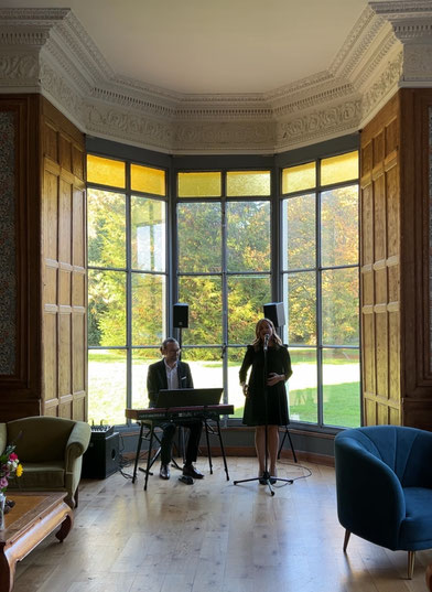 Ce mardi, nous étions cette fois à une heure de Paris, dans un magnifique château de Seine-et-Marne, pour animer le cocktail d'un séminaire d'entreprise au sein du Châteauform' Les Prés d'Écoublay. Au terme d'une journée de séminaire, les 50 invités ont pu profiter d'un apéritif dans une salle privée du château, afin de passer un moment convivial et détendu - notre duo pianiste-chanteuse était présent pour animer ce moment, et ajouter un fond musical chic et décontracté à ce cocktail entre collaborateurs, dans une atmosphère automnale très agréable.