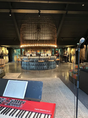 L'ambiance était d'abord jazzy en début de soirée, pendant l'apéritif, afin d'accueillir les invités dans une ambiance élégante mais pas omniprésente. Au fur et à mesure de l'événement, nous