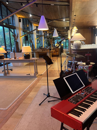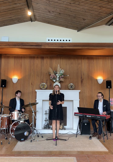 Pendant deux heures, notre trio pianiste-chanteuse-batteur a joué notre répertoire de cocktail & soirée, dans une superbe ambiance. Nous avons débuté avec une partie jazz, pour accueillir les invités dans une atmosphère raffinée, et commencer en douceur. Au fur et à mesure de la soirée, nous avons évolué vers une setlist plus pop et variété internationale, car nous avons senti que l'ambiance était joyeuse, et propice à un peu plus de rythme : Bruno Mars, Alicia Keys, Ed Sheeran, Wham!, Angèle, The Weeknd, Tones & I, Destiny's Child, Marvin Gaye, Adele, Rihanna... Nous avons eu la chance d'être accueillis avec beaucoup d'enthousiasme, l'amosphère était conviviale et détendue, dans ce magnifique cadre au bord du lac.